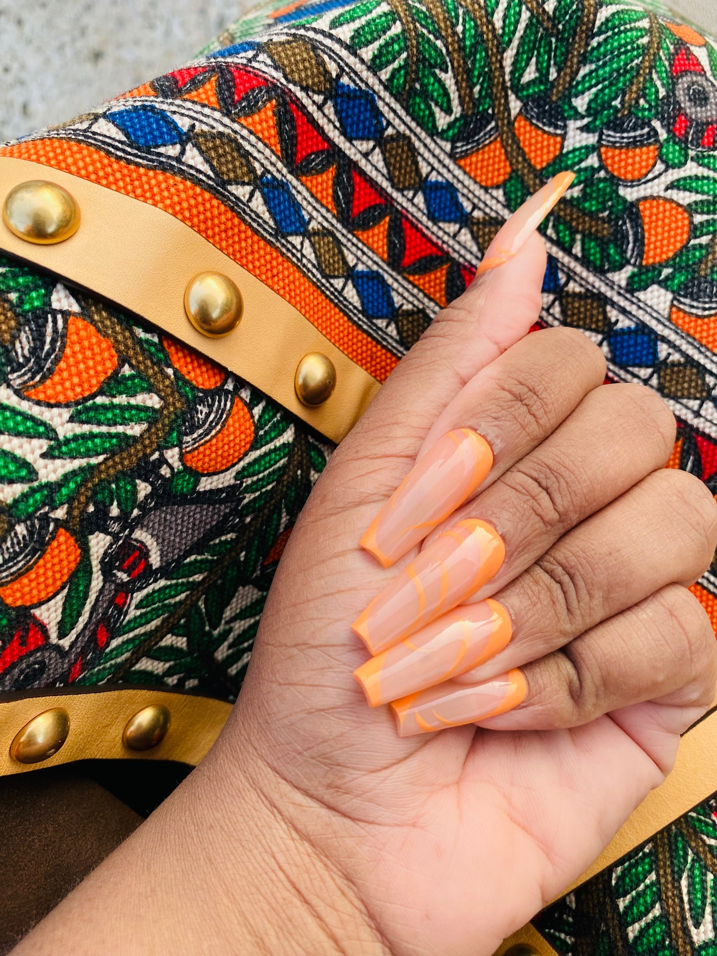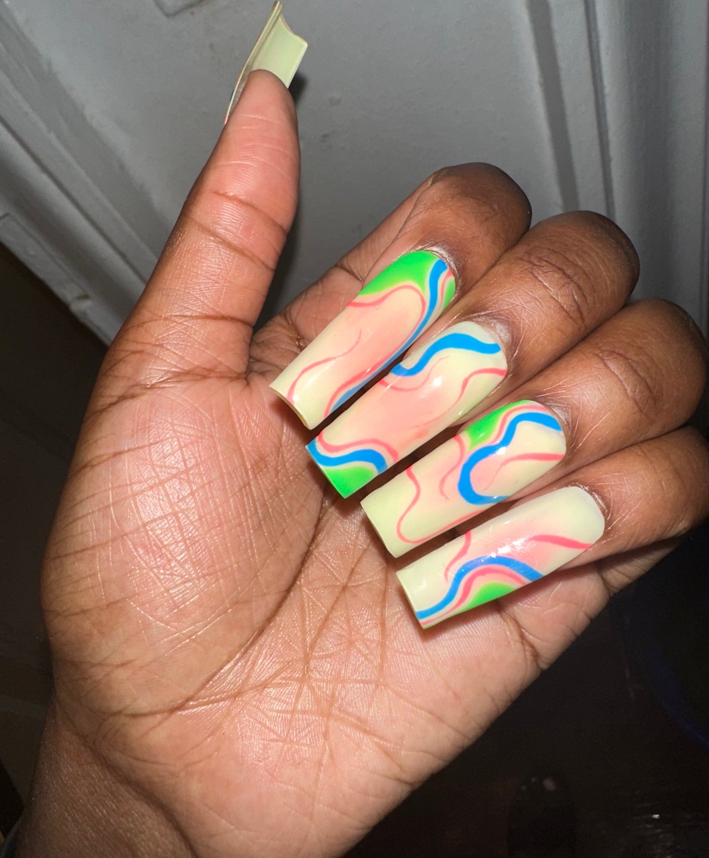 So I had to file some of the nails down a bit. The set was very cute, definitely a different style for me but it was unique and different which I love. The oil for the skin was everything. I love the scent. I was supplied with everything I needed to apply these nails flawlessly.