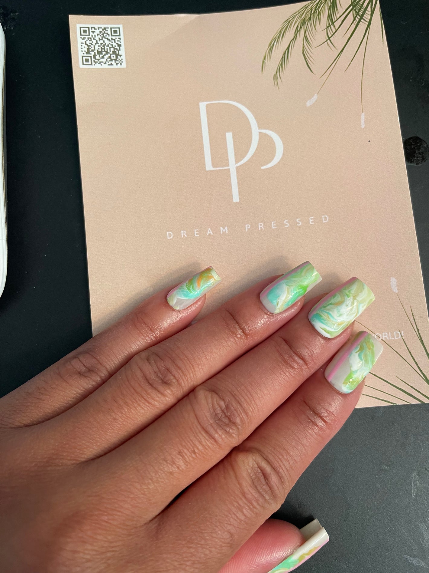These aren’t your regular press on nails, it feels stronger & the design isn’t flat. It actually feels like you went to get your nails done. What also surprised me was it came with a care kit that included (nail file, cuticle pusher, cuticle oil & alcohol wipes) with instructions…Now tell me where they do that at? Definitely recommend these press ons #dreampressed