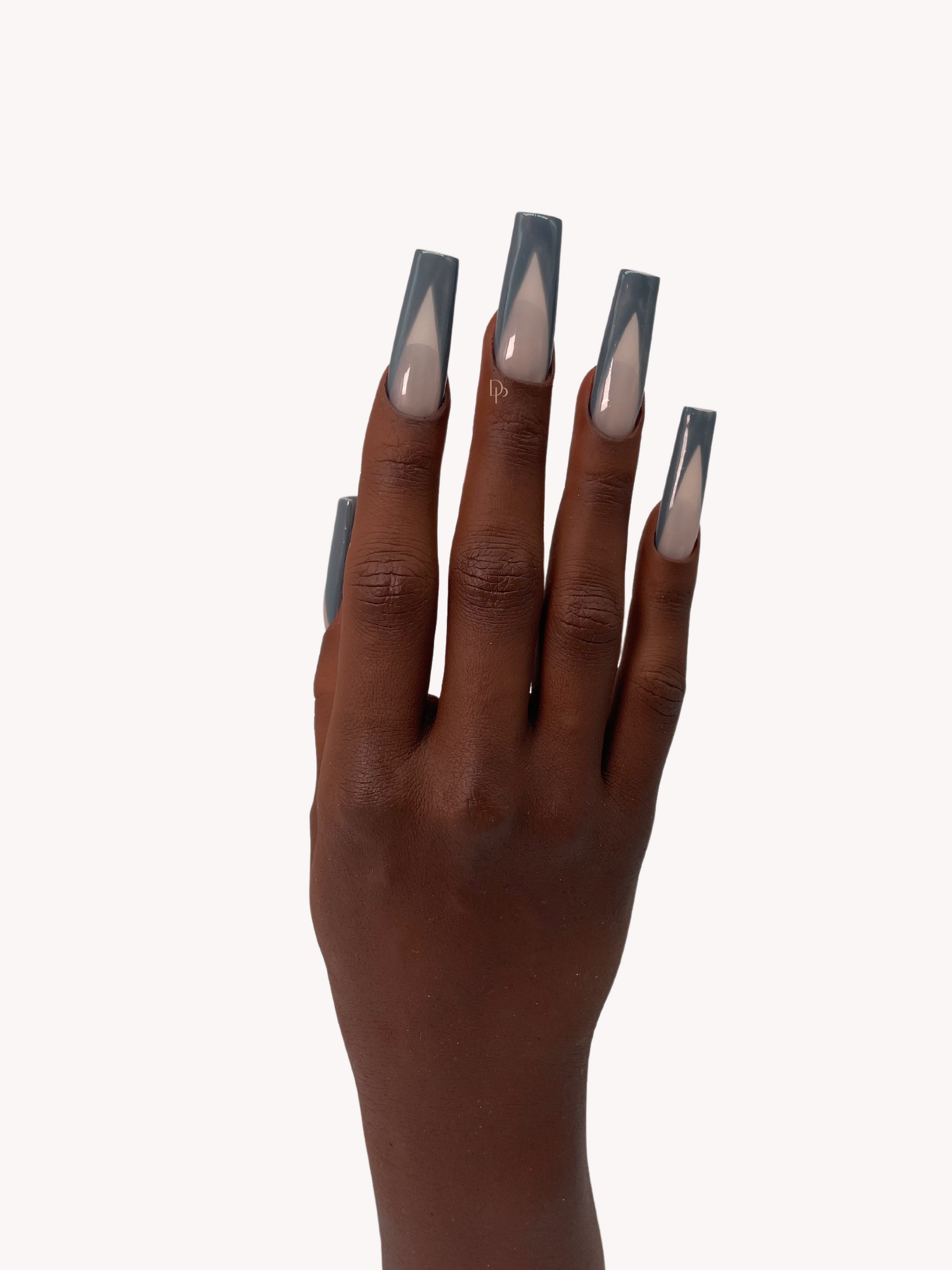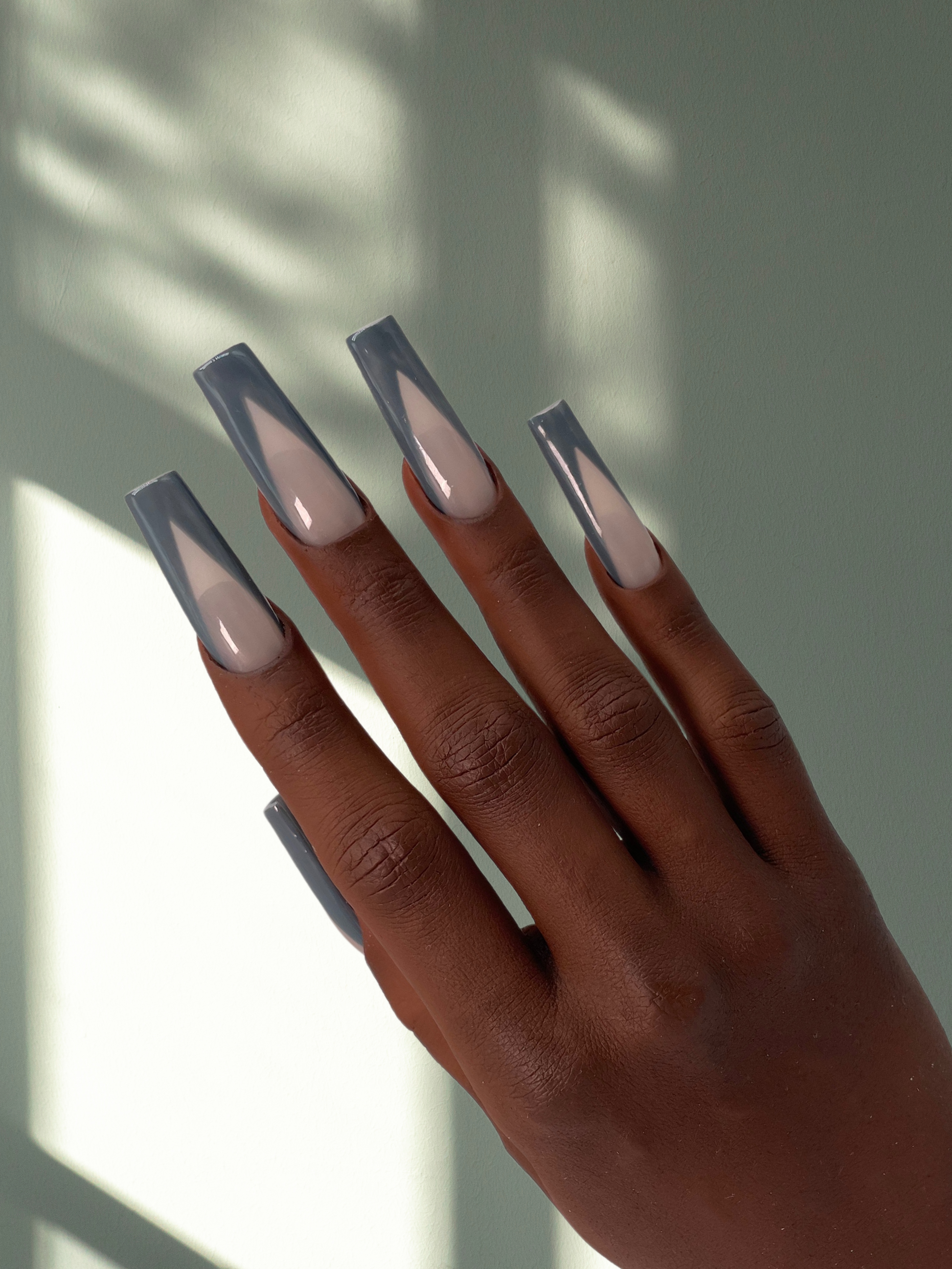 Set your style apart with these Chill Vibe French tip nails in a sleek grey tone. Their high-quality finish adds an air of sophistication and luxury to any look.