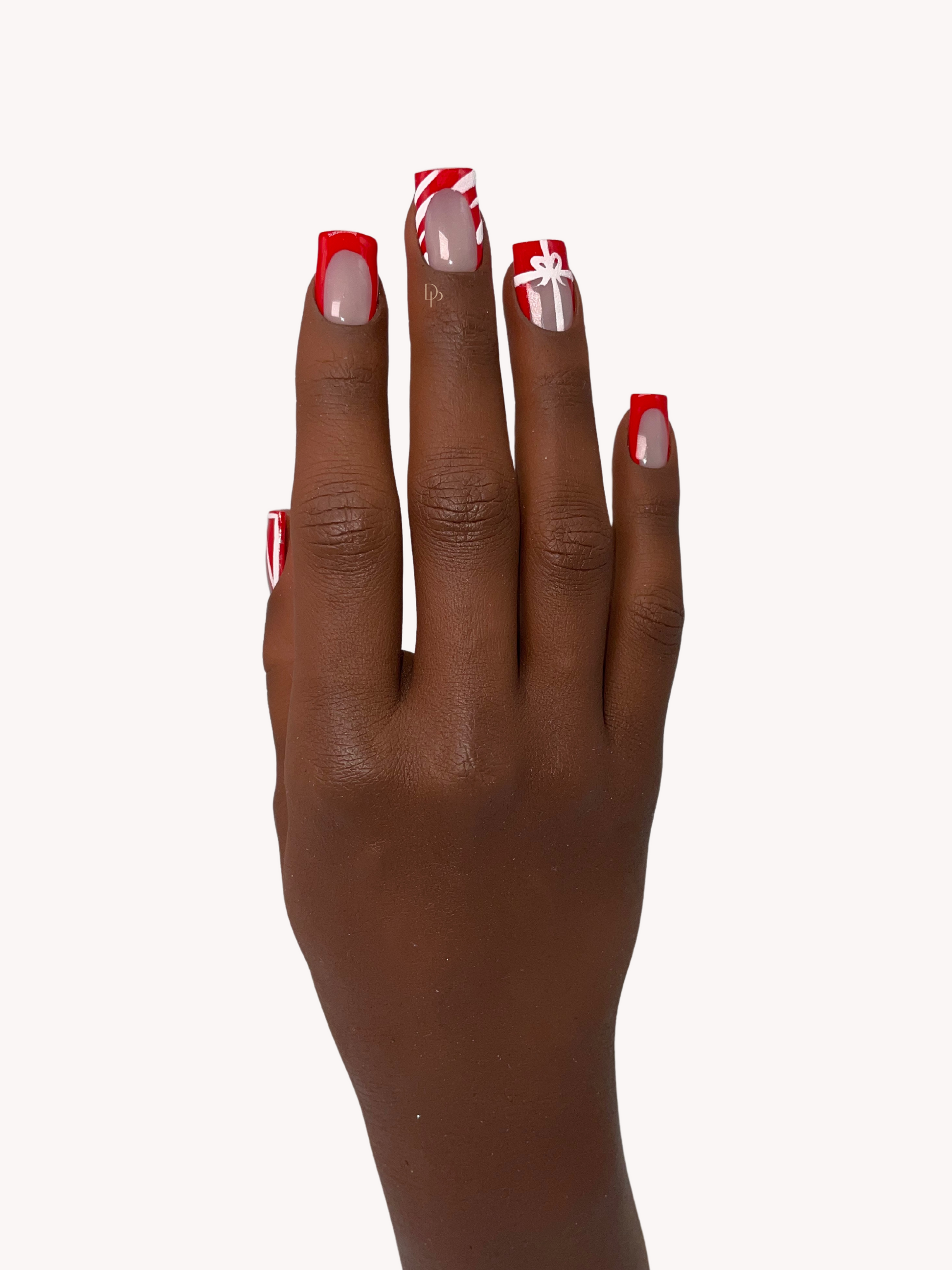 Feel the holiday spirit with Holly Jolly, the perfect nails for the festive season. Red french nails are decorated with art in white snow glitter, adding a touch of winter magic to any look.